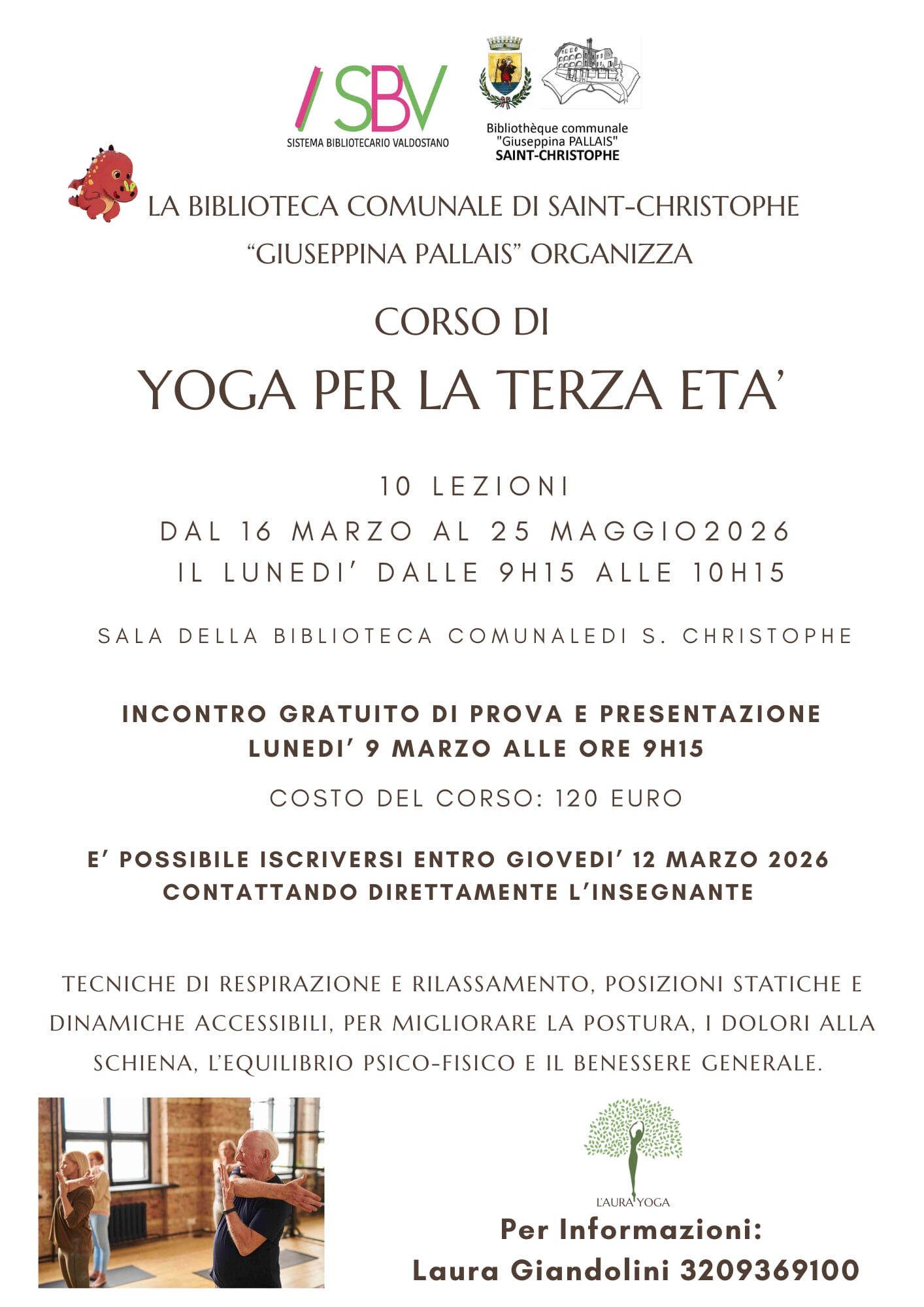 Prova gratuita lunedì 9 marzo 2026 ore 9.15 presso la saletta comunale a piano terra del Municipio di Saint-Christophe.